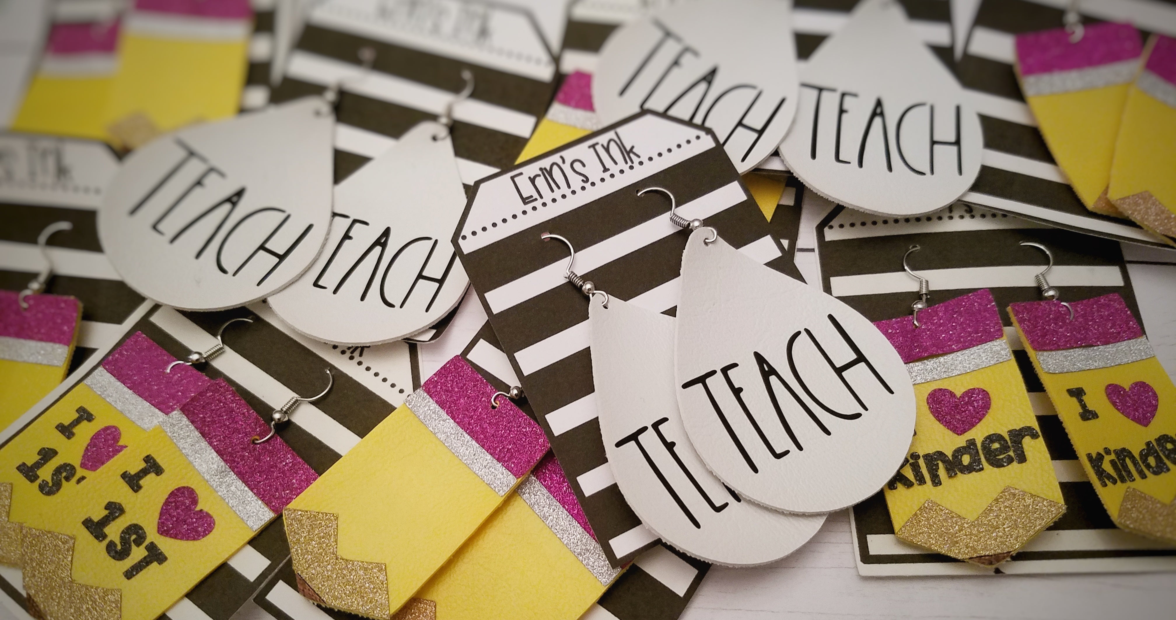 Whether you are a teacher or a student, these leather pencil earrings are sure to make a statement!! These earrings are very lightweight and made from a vegan leather material....Whether you are a teacher or a student, these leather pencil earrings are sure to make a statement!! These earrings are very lightweight and made from a vegan leather material....