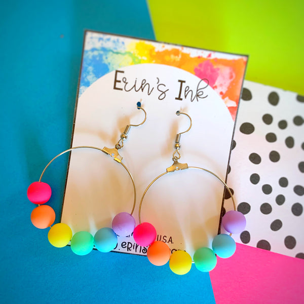 Bright Rainbow Bead Hoop Dangle Earrings Erin's Ink Bright Rainbow Bead Hoop Dangle Earrings Erin's Ink