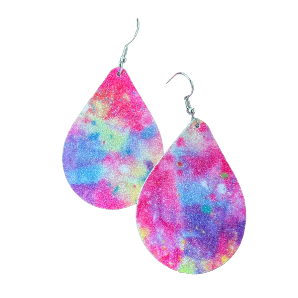 Shimmer Bright Tie Dye Tear Drop Vegan Leather Earrings Shimmer Bright Tie Dye Tear Drop Vegan Leather Earrings
