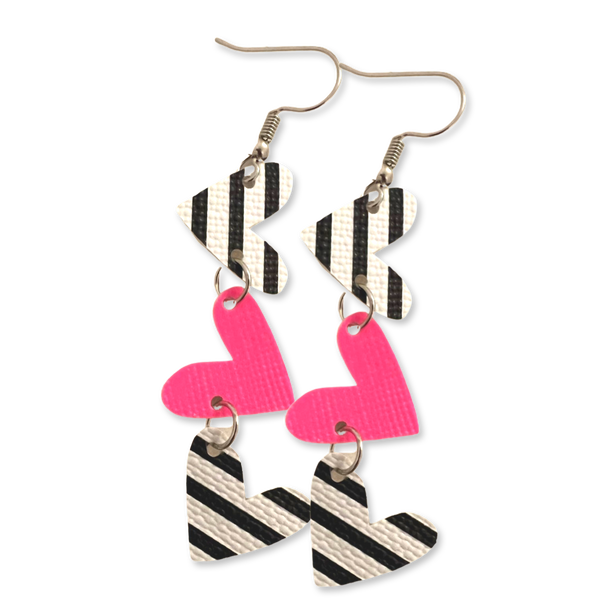 Striped and Hot Pink Heart Dangle Earrings Erin’s Ink Striped and Hot Pink Heart Dangle Earrings Erin’s Ink