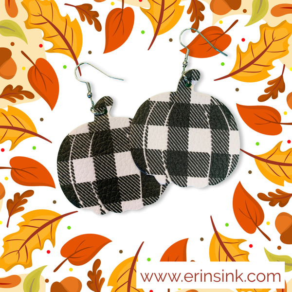 White and Black Buffalo Plaid Pumpkin Earrings White and Black Buffalo Plaid Pumpkin Earrings